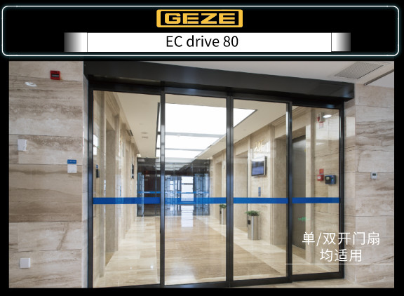 ECdrive80盖泽新式全自动平移门商品,德国设计开发设计,可用于单扇与双扇的平移门,有着简约的造型设计,科技感非凡,兼容性极强,其商品集安全性可信性与经济发展经久耐用于性为一体,系统选用优秀的模块化,在关键点上精雕细琢,高品质材料及其全新的驱动器关键技术保证 其更优特性。